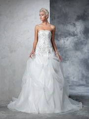 Trompete/Meerjungfrau-Linie Duchesse-Linie Trägerlos Perlen verziert Ärmellos Lange Organza Brautkleider - US 2 / UK 6 / EU 32