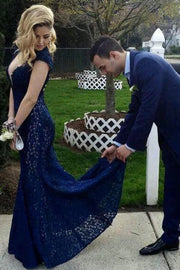 Meerjungfrau Spitze V-Ausschnitt Abendkleider Ballkleid Rückenfreies Abendkleid