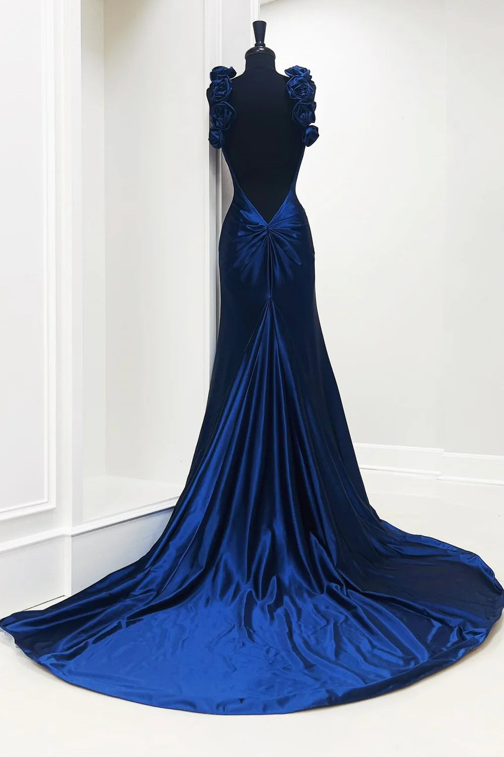 Meerjungfrau Tiefer Ausschnitt V Rückenfrei Langes Abendkleid