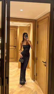 Meerjungfrau Spaghettiträger Spitze Sexy Marineblau Lange Abendkleider Brautjungfernkleider Abendkleid Ballkleid