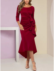 Meerjungfrau/Trompete Kleid für die Mutter der Braut, Hochzeitsgast, elegant, zierlich, U-Ausschnitt, asymmetrisch, Stretch-Stoff, lange Ärmel mit Rüschen