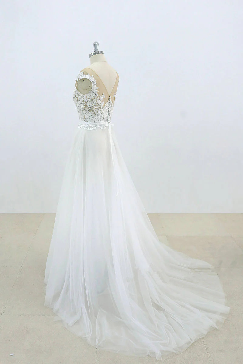 Langes Ballkleid aus Spitzentüll mit Rundhalsausschnitt