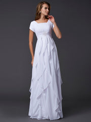Etui-Linie Chiffon Rechteckiger Ausschnitt Kurze Ärmel Bodenlang mit Rüschen Kleider