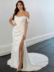 Etui-Linie/Säule Charmeuse Rüschen Schulterfrei Ärmellos Hof-schleppe Brautkleider - US 2 / UK 6 / EU 32