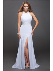 Etui-Linie Juwel-Ausschnitt Ärmellos Perlen verziert Rüschen Lange Chiffon Kleider