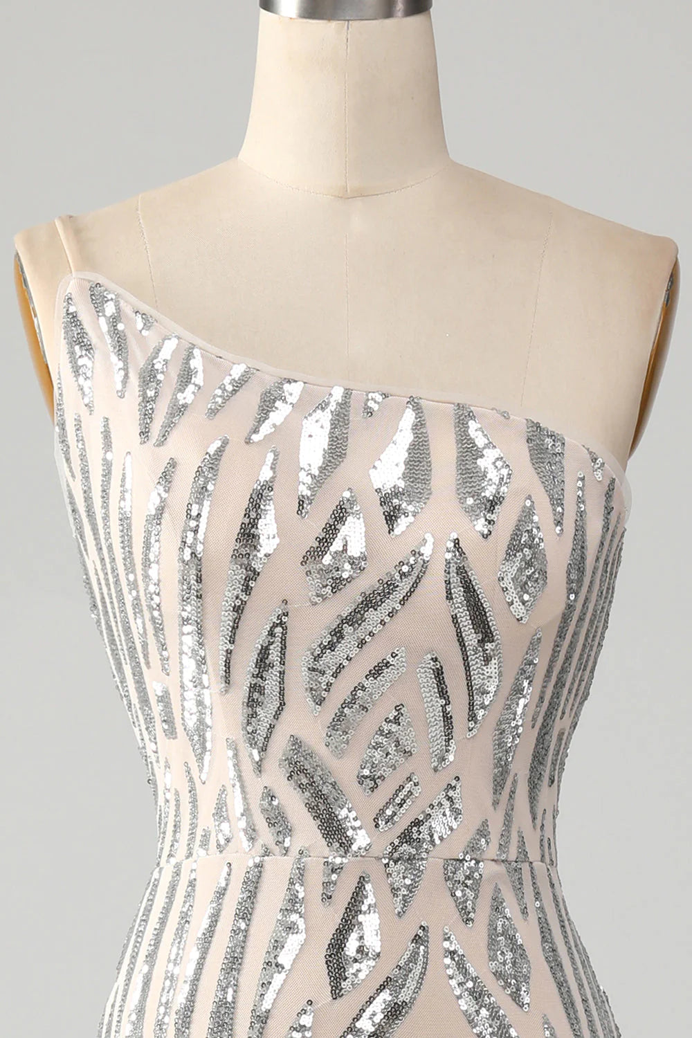 Glitzerndes Meerjungfrau-Abschlussballkleid mit einer Schulter und dunkelgrünen Pailletten