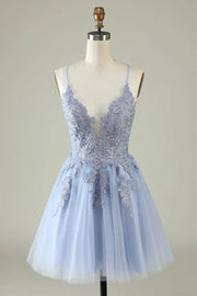 Kurzes Ballkleid mit V-Ausschnitt und Perlenapplikationen