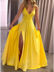 Damen Ballkleid Partykleid Etuikleid Langes Kleid Maxikleid Gelb Ärmellos Reine Farbe Gerafft Herbst Winter Herbst Spaghettiträger Modisch Abend Party Urlaub