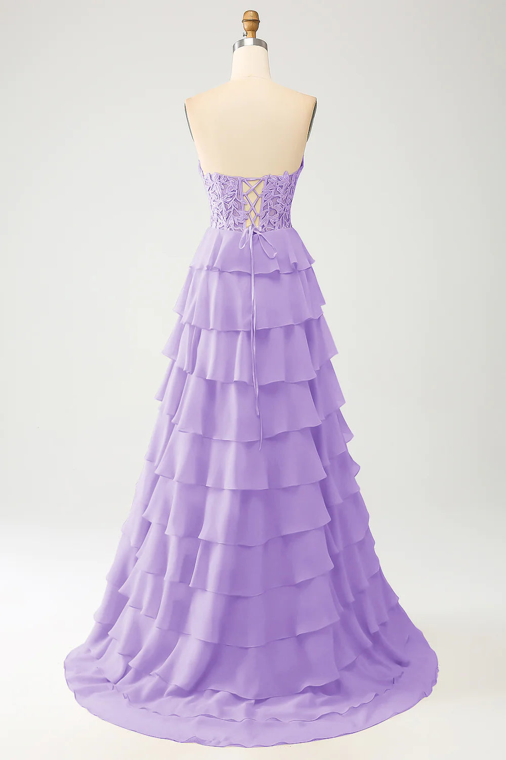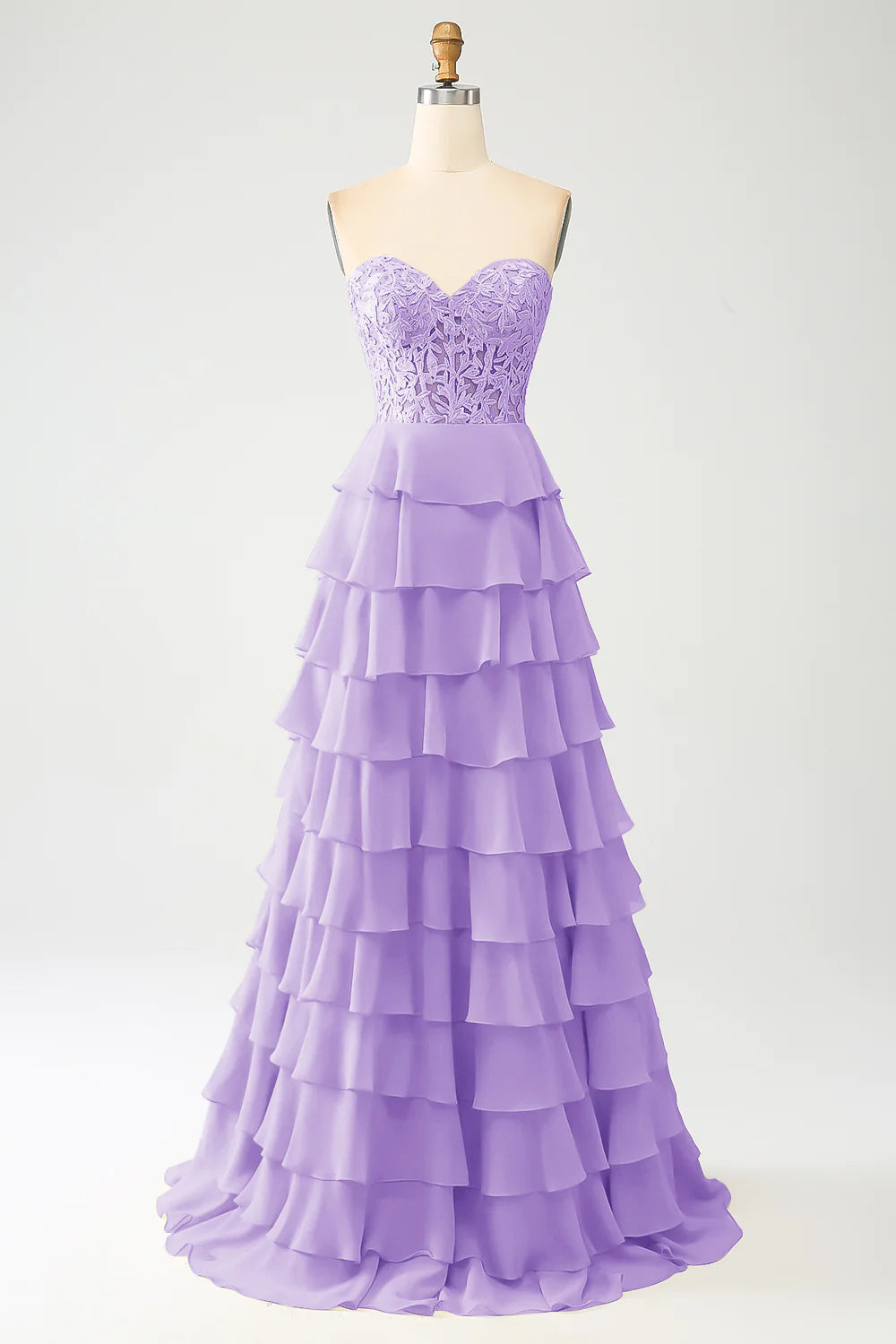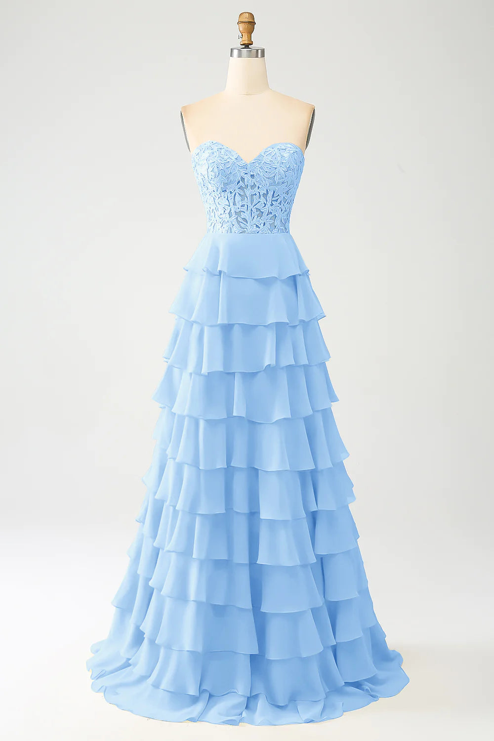 Gelbes Ballkleid mit Herzausschnitt und Stufen
