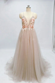 Langes Ballkleid aus Tüll mit V-Ausschnitt