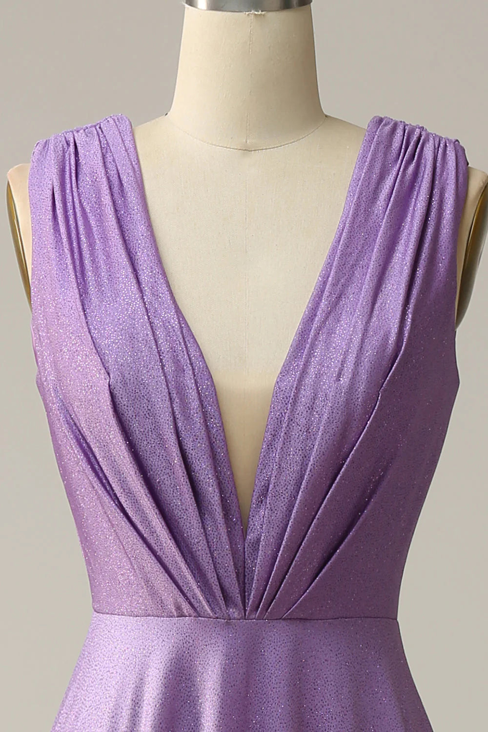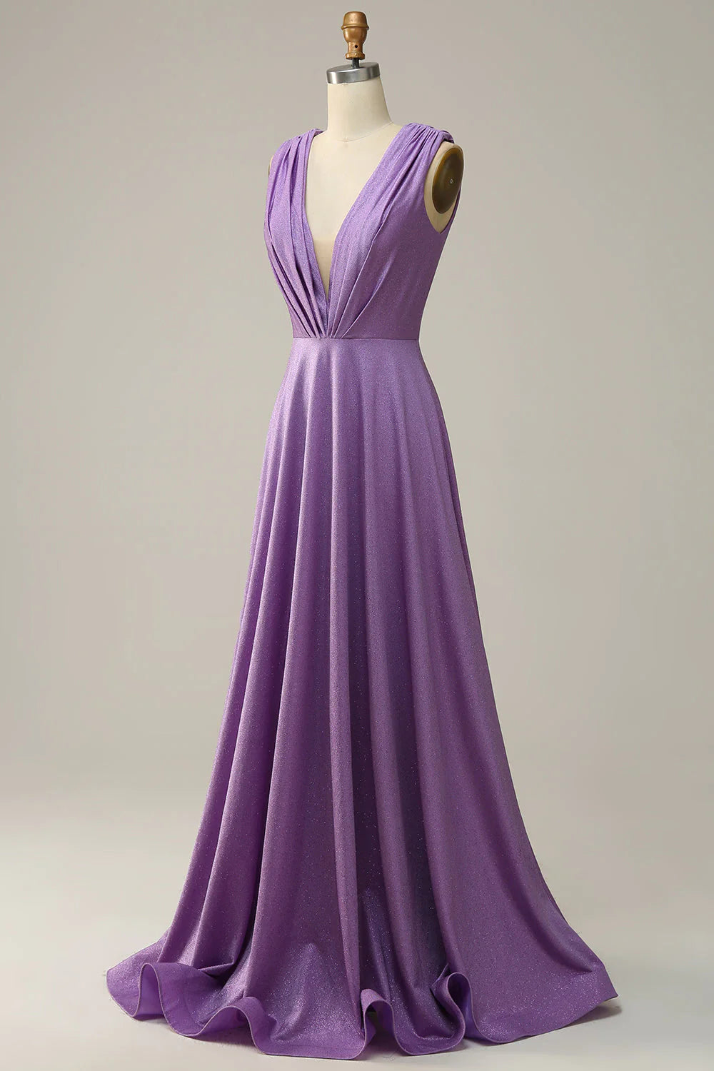 A-Linie, tiefer V-Ausschnitt, lila, ärmellos, langes Ballkleid