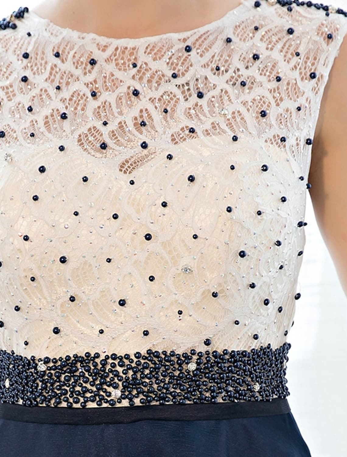A-Linie, elegantes, mit Perlen besetztes, Pailletten-Abschlussballkleid, formelles Abendkleid, ärmellos, bodenlang, Tüll über Spitze, Perlenbesatz - Wie Bild1 / US 2 / UK 6 / EU 32