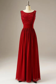 Langes Chiffonkleid in A-Linie mit Spitzenoberteil