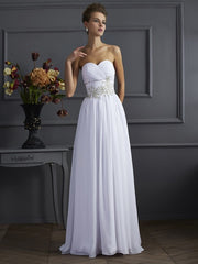 A-Linie/Princess-Linie Herzausschnitt Ärmellos Perlen verziert Lange Applikationen Chiffon Kleider