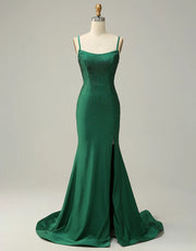 A-Linien-Ballkleid mit Spaghettiträgern und Korsettrücken und Schlitz