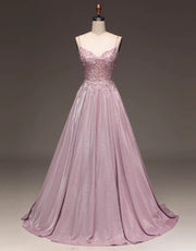 A-Linie Spaghettiträger Langes Glitzer-Ballkleid