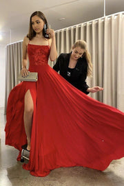 A-Linie Spaghettiträger Rot Chiffon Langes Ballkleid Abendkleid