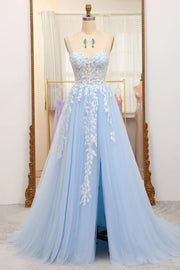 A-Linien-Ballkleid mit Spaghettiträgern, Reißverschluss hinten und Applikationen