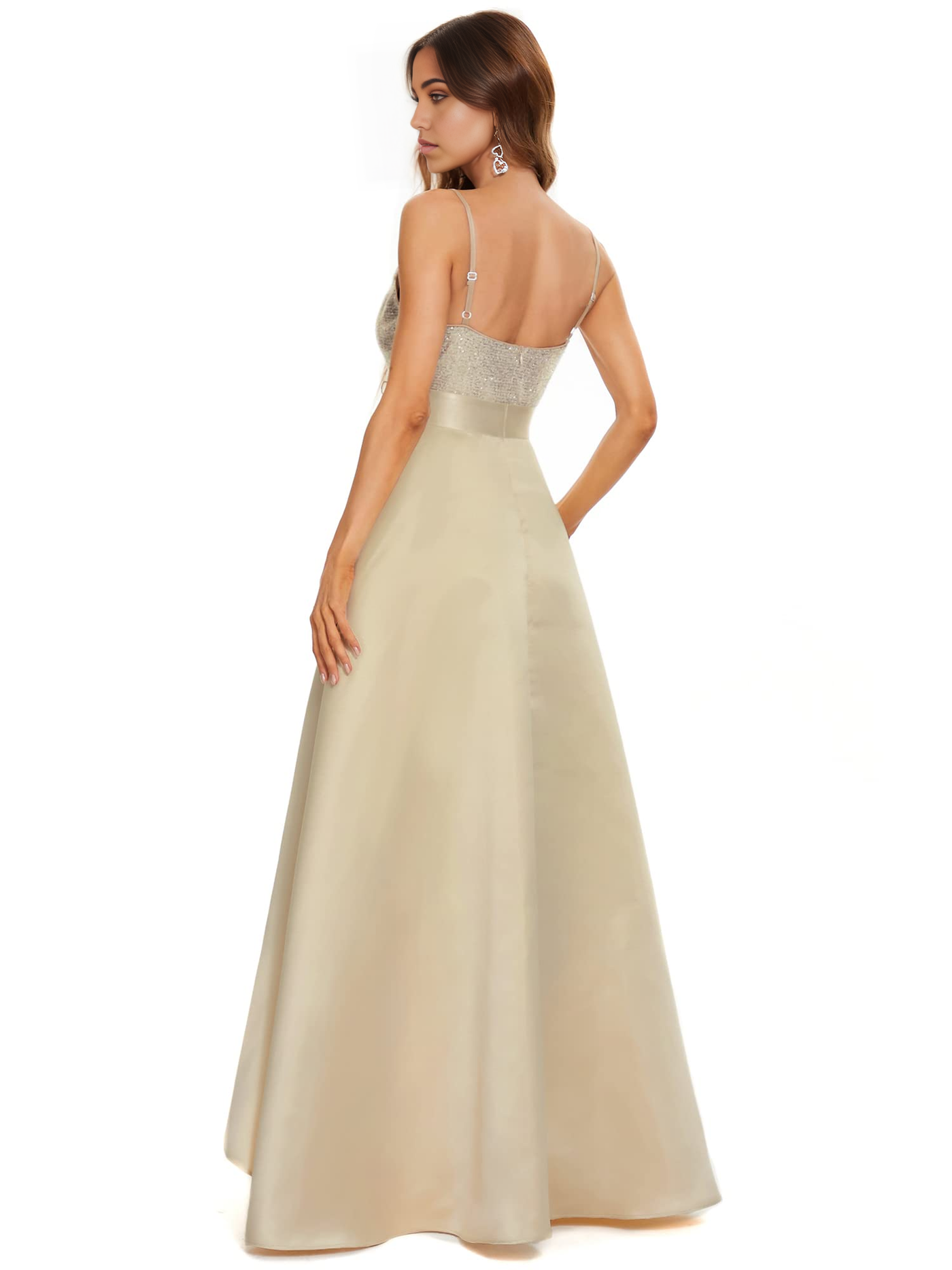 A-Linie V-Ausschnitt High-Low Satin Abendkleider Brautjungfernkleider Abendkleid Ballkleid