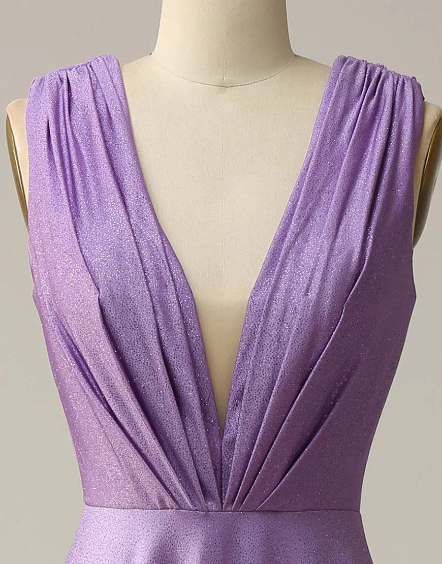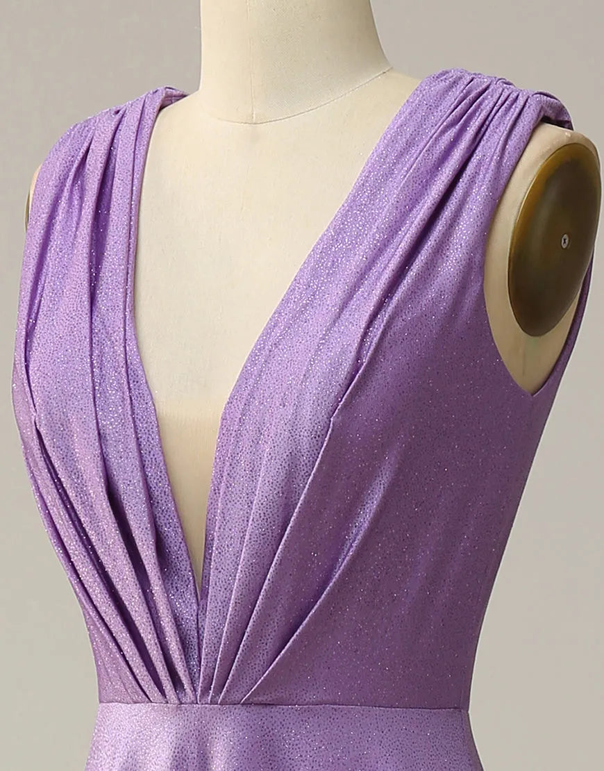 A-Linie, V-Ausschnitt, langes Glitzer-Ballkleid mit Plissee