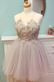 Süßes kurzes Ballkleid mit V-Ausschnitt und Tüllperlen