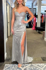 Langes Ballkleid im Meerjungfrauen-Stil mit Metallic-Glitzer und Schlitz - US 2 / UK 6 / EU 32
