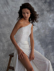Meerjungfrau/Trompete Ballkleider Sparkle & Shine Kleid Formelle Hochzeit Party Hofschleppe Ärmellos Ein Schulter Pailletten mit Pailletten