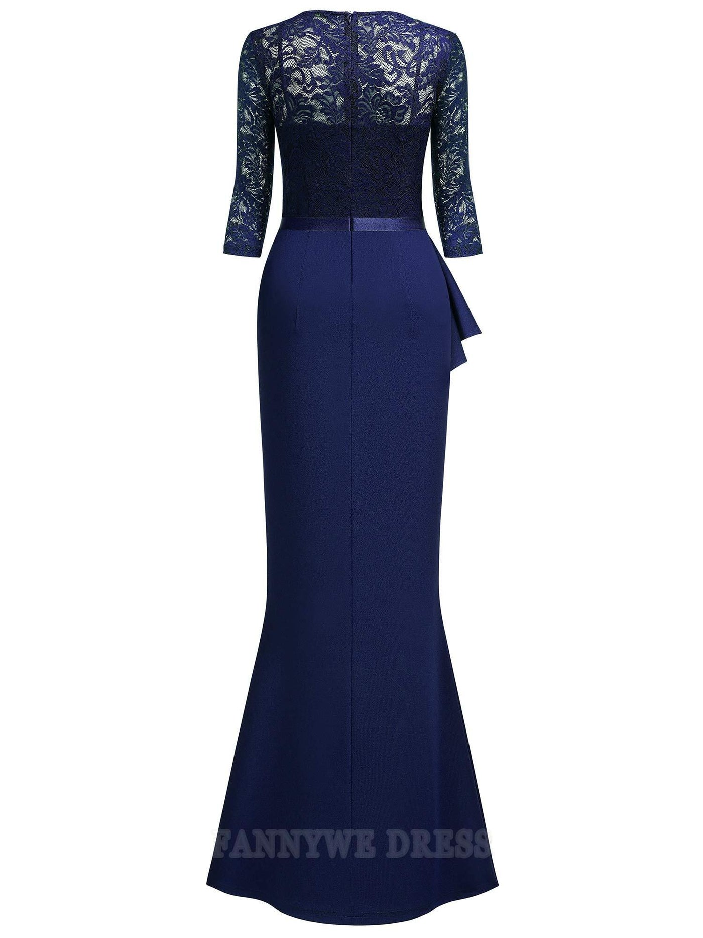 Meerjungfrau V-Ausschnitt Halbarm Spitze Rüschen Abendkleider Abendkleid Brautjungfernkleider - US 2 / UK 6 / EU 32