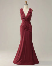 Meerjungfrau-Ballkleid mit V-Ausschnitt, lang, glitzernd und plissiert