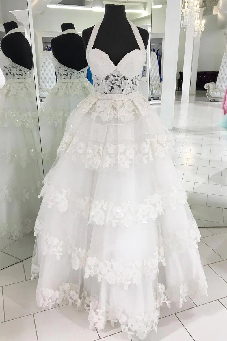 Langes Ballkleid mit Tüll-Spitzenapplikation am Hals