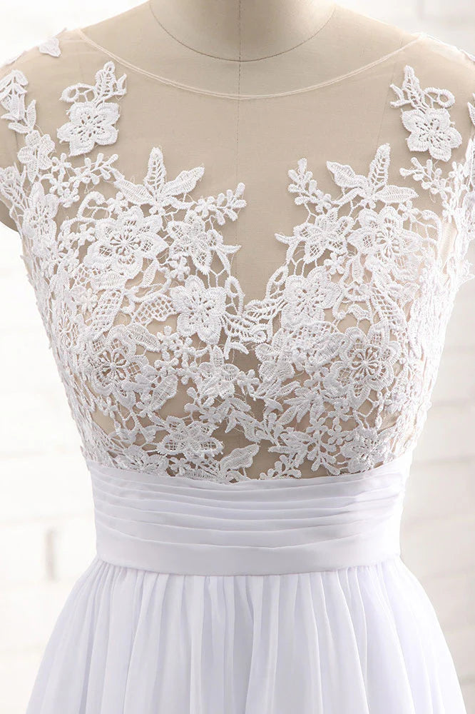 Langes Ballkleid aus Spitze mit Rundhalsausschnitt