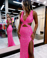 Ballkleid mit Schlitz vorne und Pailletten