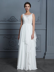 A-Linie/Princess-Linie U-Ausschnitt Ärmellos Rüschen Bodenlang Chiffon Brautkleider