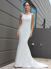 Etui-Linie/Säule Stretch-Krepp Geraffte Spaghettiträger Ärmellos Sweep/Pinsel zug Brautkleider