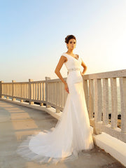 Etui-Linie V-Ausschnitt Falten Ärmellos Lange Netz Strand Brautkleider