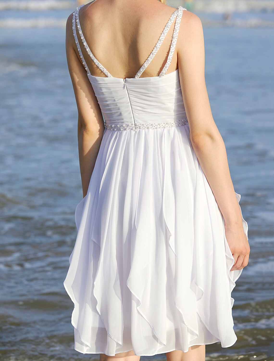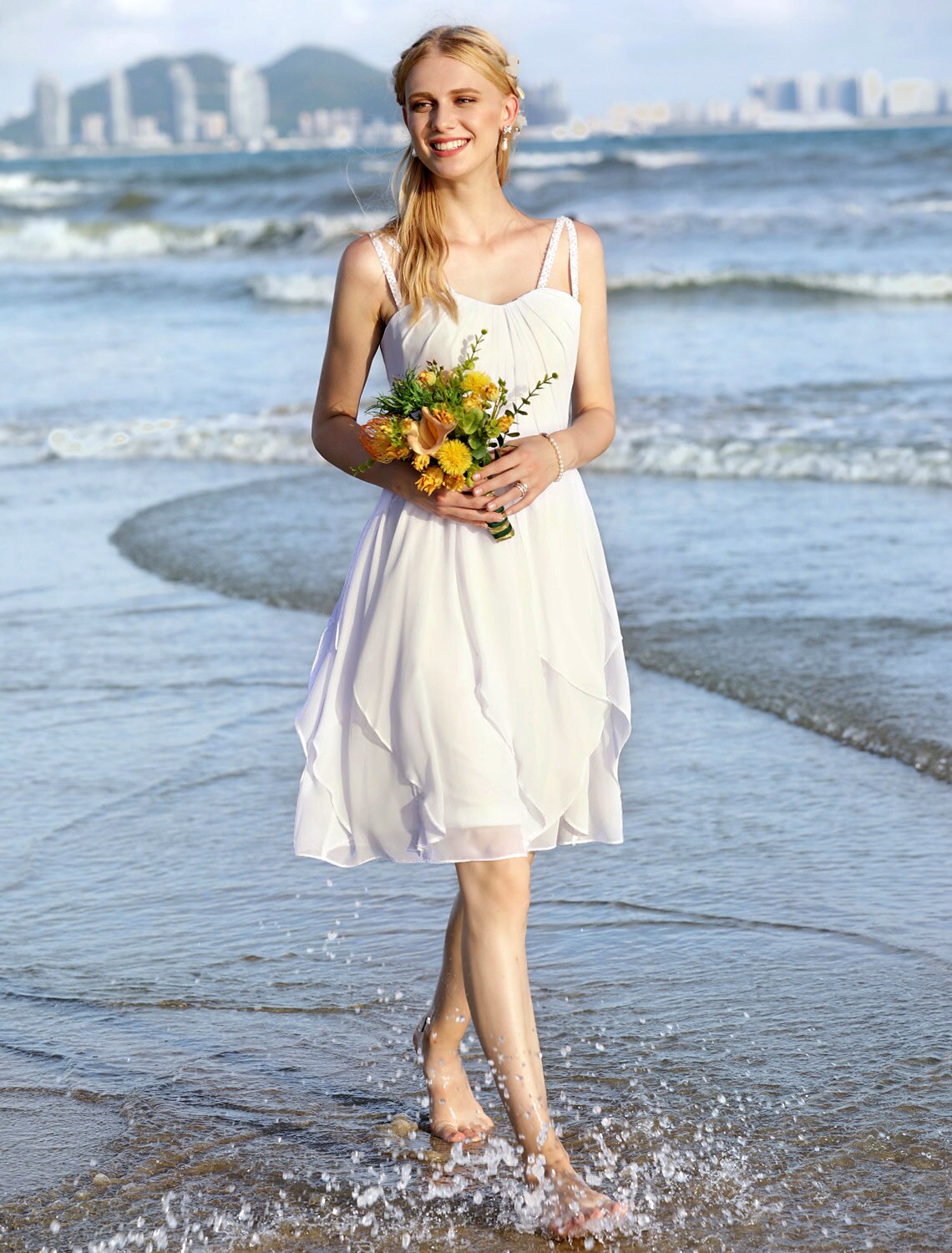 Brautkleider A-Linie Herzausschnitt Normale Träger Knielang Chiffon Brautkleider Mit Schärpe/Band Gerüscht - US 2 / UK 6 / EU 32