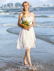 Brautkleider A-Linie Herzausschnitt Normale Träger Knielang Chiffon Brautkleider Mit Schärpe/Band Gerüscht