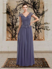 A-Linien-Kleid für die Brautmutter, Übergröße, elegant, V-Ausschnitt, bodenlang, Chiffon, Spitze, Pailletten, kurze Ärmel mit Faltenapplikationen