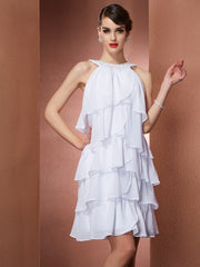 Vestidos de fiesta de gasa con escote redondo, sin mangas, cortos o mini con cuentas