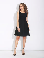 Vestidos cortos/mini de gasa con escote redondo, sin mangas y lazo