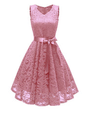 Vestidos de cóctel de corte A, minimalistas, cortos/mini, sin mangas, con escote en V, encaje y lazos, pliegues. - Rosa / EE. UU. 2 / Reino Unido 6 / UE 32