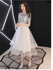 Vestido de cóctel de corte A, de satén, con media manga y lentejuelas