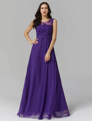 Vestidos de noche de corte A para invitada de boda, largo hasta el suelo, sin mangas, de gasa, espalda en V, apliques de cuentas - EE. UU. 2 / Reino Unido 6 / UE 32