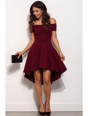 Vestido de fiesta de bienvenida lindo de hada de corte A con hombros descubiertos, manga corta, minivestido corto de satén elástico con