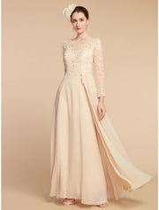 Vestido de novia de corte A para invitada de boda, elegante, cuello joya, largo hasta los tobillos, de gasa, encaje, manga larga con fruncido, color liso