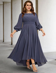 Vestidos de Madre de la Novia de Corte A, Talla Grande, Ocultar la Curva del Vientre, Vestido Elegante Formal Asimétrico, Mangas 3/4, Cuello Joya, Gasa con Pliegues y Apliques