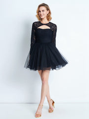 Vestidos cortos/mini con encaje, cuello alto, manga larga y red en forma de A