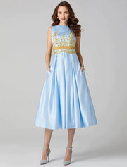 Vestido de fiesta de corte A para boda, sin mangas, espalda en V, pliegues y apliques - Como en la imagen 1 / EE. UU. 2 / Reino Unido 6 / UE 32