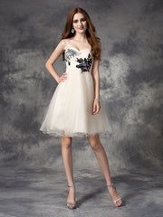 Vestidos cortos de red sin mangas con apliques de corazón y corte A/princesa