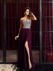 Vestidos largos de gasa sin mangas con escote corazón y cuentas, corte princesa/corte A